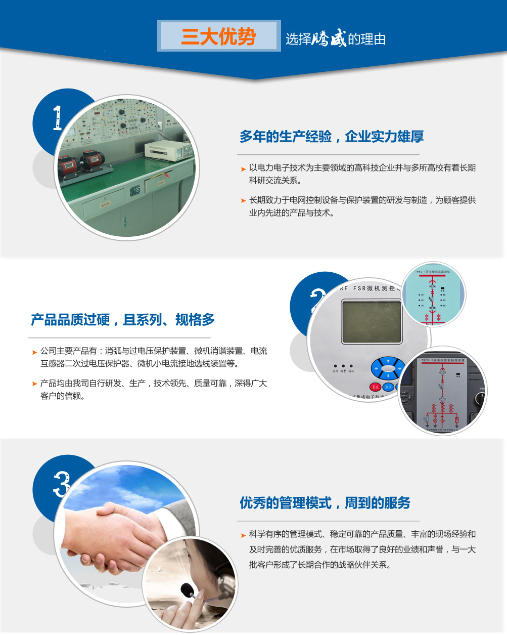 合肥騰威集成電子技術(shù)有限公司是一家以電力電子技術(shù)為主要領(lǐng)域的高科技企業(yè),坐落于國家科技創(chuàng)新型城市合肥,與多所高校有著長期科研交流關(guān)系。   公司長期致力于電網(wǎng)控制設(shè)備與保護(hù)裝置的研發(fā)與制造,為顧客提供業(yè)內(nèi)先進(jìn)的產(chǎn)品與技術(shù)。公司主要產(chǎn)品有:消弧與過電壓保護(hù)裝置、微機(jī)消諧裝置、電流互感器二次過電壓保護(hù)器、微機(jī)小電流接地選線裝置、微機(jī)電壓綜合保護(hù)裝置(抑制柜/聚優(yōu)柜控制器)、開關(guān)柜智能操控裝置、開關(guān)柜無線測溫裝置、電網(wǎng)運(yùn)行設(shè)備在線絕緣監(jiān)測裝置、可恢復(fù)式爆炸橋控制器、中性點(diǎn)接地電阻柜微機(jī)測控裝置等。以上產(chǎn)品均由我司自行研發(fā)、生產(chǎn),質(zhì)量可靠,深得廣大客戶的信賴。   公司憑借科學(xué)有序的管理模式、穩(wěn)定可靠的產(chǎn)品質(zhì)量、豐富的現(xiàn)場經(jīng)驗(yàn)和及時(shí)完善的服務(wù),在市場取得了良好的業(yè)績和聲譽(yù),與一大批客戶形成了長期合作的戰(zhàn)略伙...